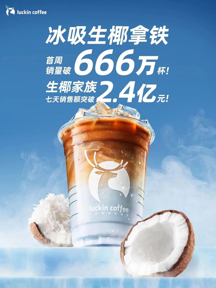 數據是最好的證明:近日,瑞幸官方宣布「生椰拿鐵」上市兩周年銷量已突破3億杯!最近另一款新品「冰吸生椰拿鐵」,上市一周銷量就突破了666萬杯,打破了2022年10月由「生酪拿鐵」創(chuàng)下的上市一周659萬杯的新品銷量紀錄。