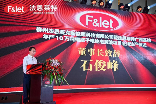 法恩萊特舉行廣西基地年產(chǎn)10萬噸鋰離子電池電解液項目 全線達產(chǎn)儀式