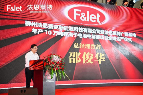 儀式上,法恩萊特邵俊華總經(jīng)理在致辭表示:柳州法恩賽克項目不僅是法恩萊特在華南區(qū)域作出的重大戰(zhàn)略部署,更是法恩萊特面向全球布局的重大舉措。法恩萊特將以此次項目全線達產(chǎn)為新的起點,發(fā)揮公司的技術(shù)、戰(zhàn)略、規(guī)模和品牌等優(yōu)勢,深耕細作新能源鋰電池行業(yè)材料電解液市場,深化新能源鋰電池行業(yè)更大范圍、更寬領(lǐng)域的務(wù)實合作,為新能源汽車、儲能系統(tǒng)、消費電池客戶提供更具優(yōu)勢、更高性能的超級鋰電池電解液解決方案,為新能源行業(yè)的持續(xù)創(chuàng)新貢獻更多力量。