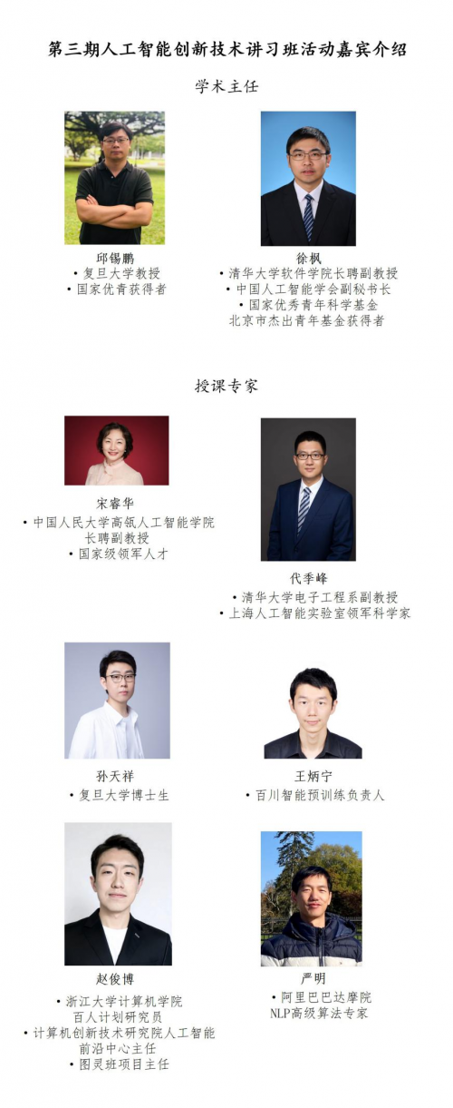 本期人工智能創(chuàng)新技術(shù)講習班將采用線下開班,線上直播互動同步進行,關(guān)注“中國人工智能學會”公眾號可獲取更多報名信息,免費參加線下講習班。
