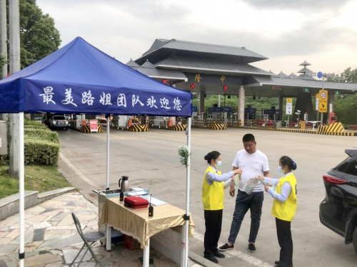 收費(fèi)廣場(chǎng)的便民服務(wù)臺(tái)前,桌子上擺滿了高速地圖、住宿推薦、旅游攻略等各式各樣的宣傳手冊(cè),緊急醫(yī)藥箱、簡(jiǎn)易維修工具等一應(yīng)俱全。“你們收費(fèi)站附近有修車的嗎?我的車半路出了點(diǎn)問(wèn)題,現(xiàn)在得趕緊找個(gè)修車的地方?!币晃粍傁碌赖呢涇囁緳C(jī)搖下車窗,焦急地詢問(wèn)道。“您先別著急,右邊大概100米左右就有一家汽修店,不遠(yuǎn)的。天熱了給您拿瓶水喝,解解渴?!敝驹刚咭贿吇貞?yīng)著,一邊為司機(jī)送上了礦泉水?!艾F(xiàn)在出發(fā)去武漢的話,路上堵車嗎?”帶著一家人準(zhǔn)備回家的王師傅咨詢道?!澳梢躁P(guān)注‘湖北e出行’微信公眾號(hào),上面有實(shí)時(shí)路況信息,以后開車的時(shí)候都用得上?!睋?dān)心司機(jī)操作不熟練,志愿者還手把手地進(jìn)行了演示?!澳銈冞@有地圖嗎?”“有開水嗎?”“有沒(méi)有多余的口罩啊?”……一張張燦爛的笑臉,一次次悉心的解答,志愿者們用真誠(chéng)和真心,化作了高速路口最靚麗的風(fēng)景。