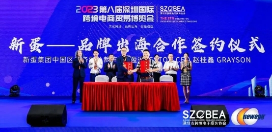本次大會期間,新蛋集團分別與VANTRUE聯(lián)合創(chuàng)始人陳劍 George,盈通Yeston CEO趙桂鑫Grayson,公牛集團跨境電商出口業(yè)務總監(jiān)易恬3位企業(yè)代表簽訂業(yè)務合作協(xié)議,共謀未來深圳跨境電商出口新發(fā)展藍圖,搭建中國產業(yè)互聯(lián)互通的橋梁。