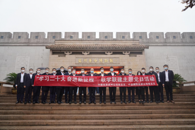 11月17日,蘇州公司黨總支與中建國際投資公司黨總支攜手共赴蘇州革命博物館、中共蘇州獨立支部舊址開展“學習二十大 奮進新征程”聯學聯建主題黨日活動。東孚蘇州公司黨總支部分黨員代表,中建國際投資公司黨總支部分黨員、入黨積極分子代表共計20余人參加活動。